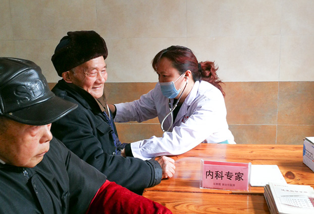 醫(yī)院團委工作人員向長城鄉(xiāng)敬老院贈送物資